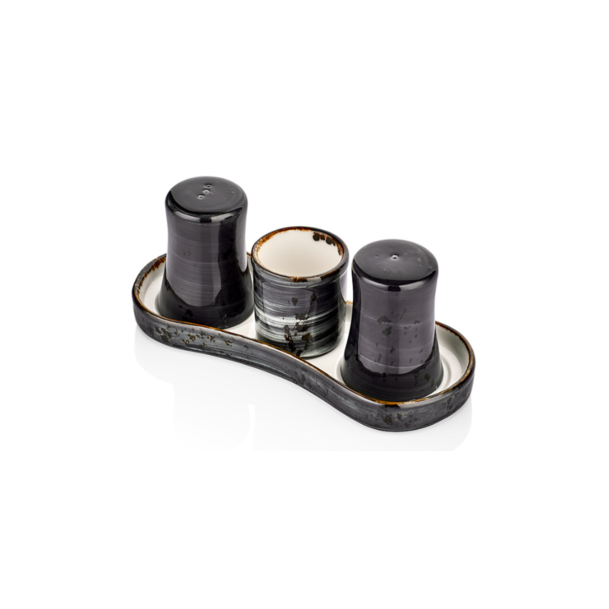 SET DE SALIÈRE ET POIVRIER SUR PLATEAU NOIRE